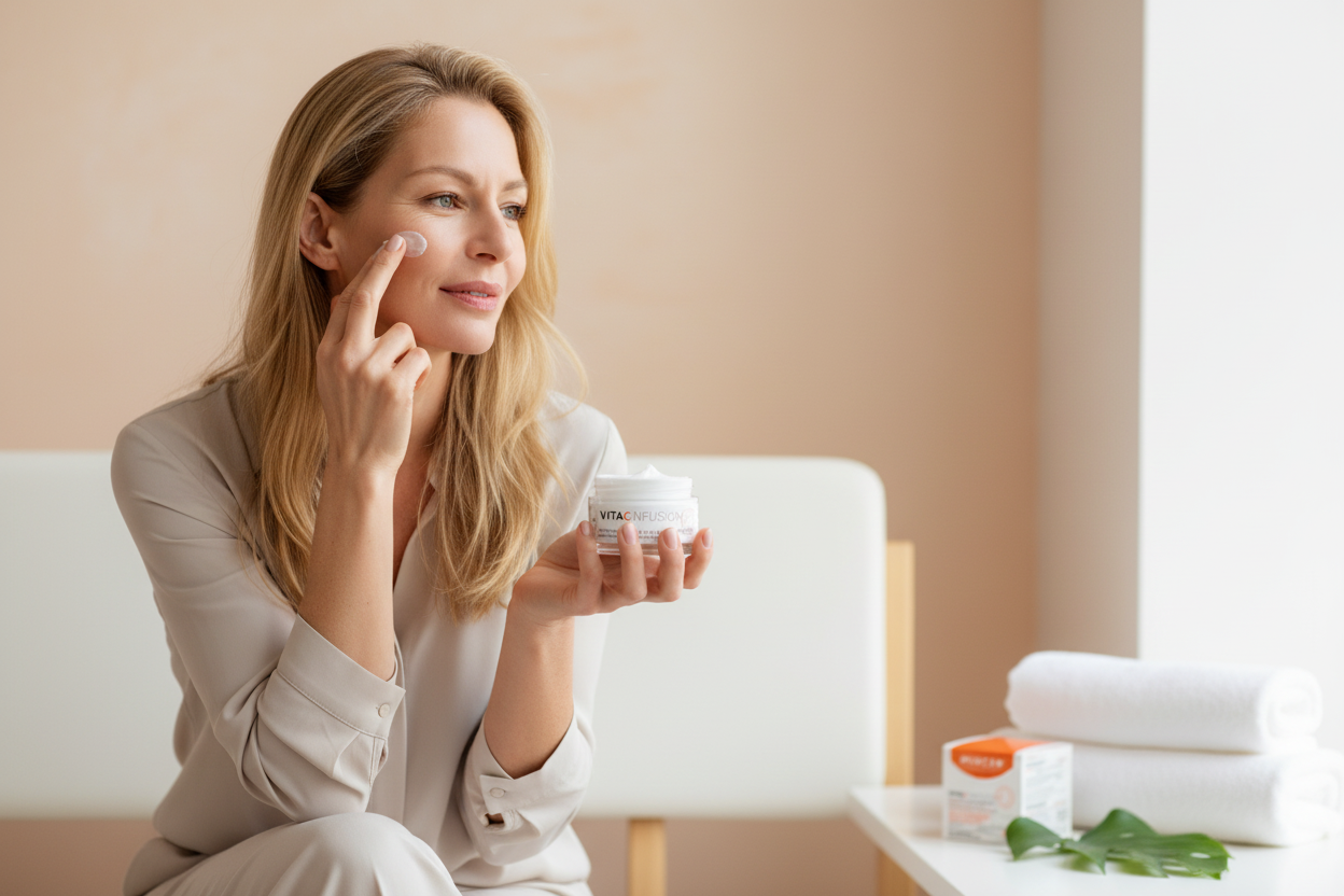 Receptura dostarcza efekt porównywalny do medycyny estetycznej — poprawia jędrność i napięcie skóry bez inwazyjnych zabiegów, a składniki aktywne działają wielopoziomowo