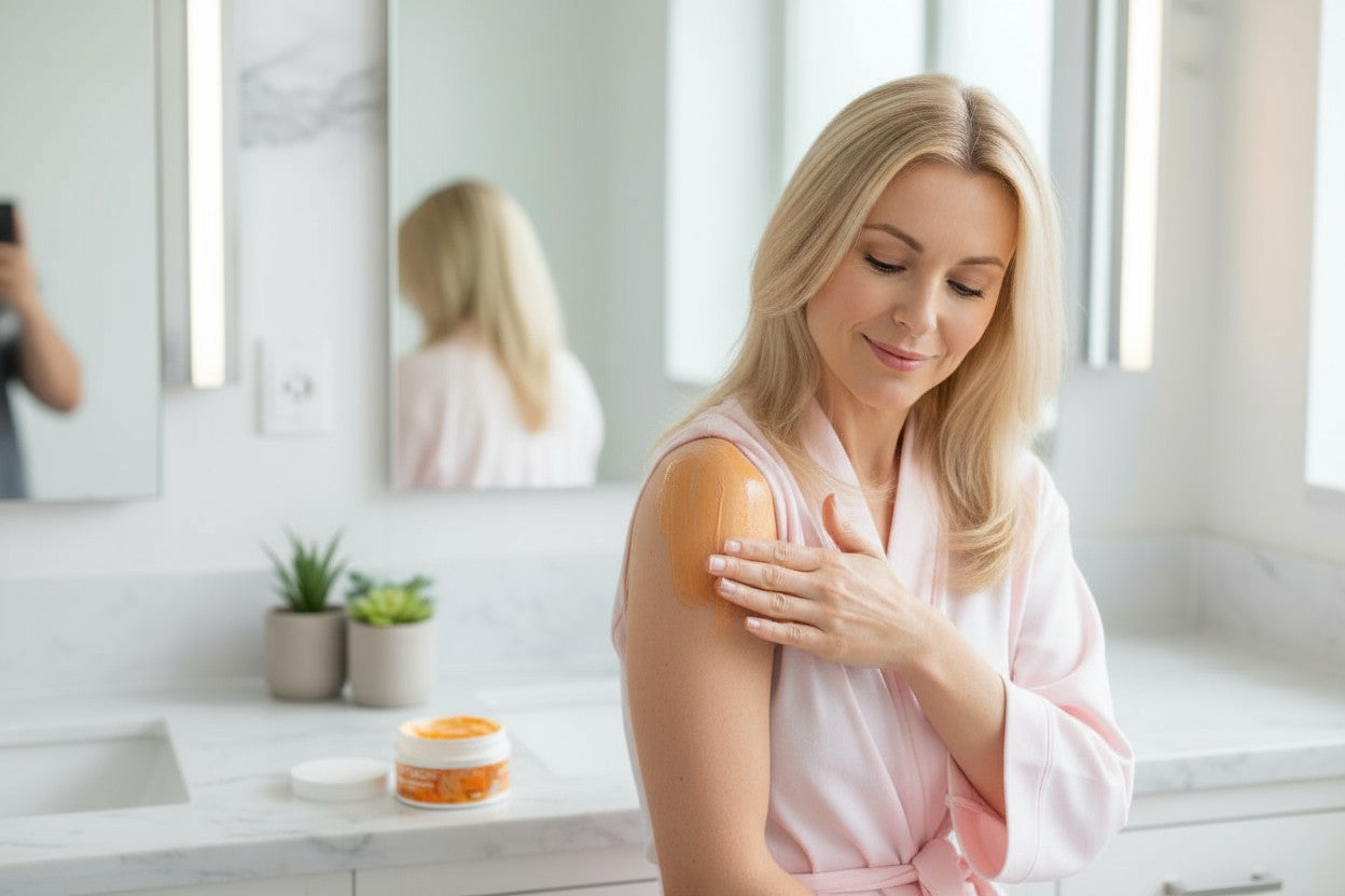 Nasz peeling do ciała z linii Vita C Infusion to skuteczna, ale delikatna kuracja, która łączy przyjemność pielęgnacji z profesjonalnym działaniem – idealny dla skóry wymagającej wygładzenia, nawilżenia i rozświetlenia. Formuła oparta na cukrze trzcinowym i olejach pielęgnujących pozwala na usunięcie martwych komórek naskórka, jednocześnie wspierając regenerację skóry.