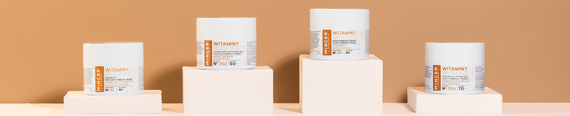 Seria Witaminy Młodości od Mincer Pharma została opracowana z myślą o codziennej pielęgnacji skóry dojrzałej. Zawiera kompleks witamin A i E, miłorząb japoński, olej z awokado oraz wosk pszczeli – składniki, które wspierają regenerację skóry, wygładzają zmarszczki i poprawiają elastyczność.