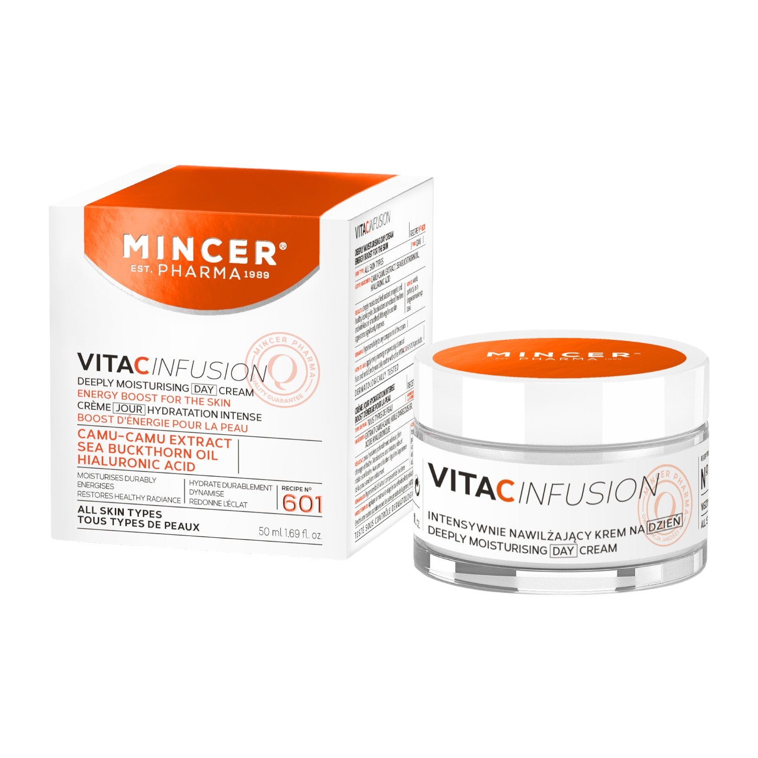 Intensywnie nawilżający krem na dzień z linii Vita C Infusion dający zastrzyk energii skórze. Długotrwały efekt zdrowo wyglądającej i promiennej skóry. Krem redukuje przebarwienia, a drobne linie oraz zmarszczki stają się wygładzone. Przy regularnym stosowaniu wygląd skóry ulega wyraźnej poprawie. Krem na dzień dedykowany wszystkim typom cery. Ekstrakt camu-camu oraz olej z rokitnika to składniki aktywne zawierające potężną dawkę witaminy C. Dodatkowo krem zawiera kwas hialuronowy, który zmniejsza oznaki starzenia się skóry.