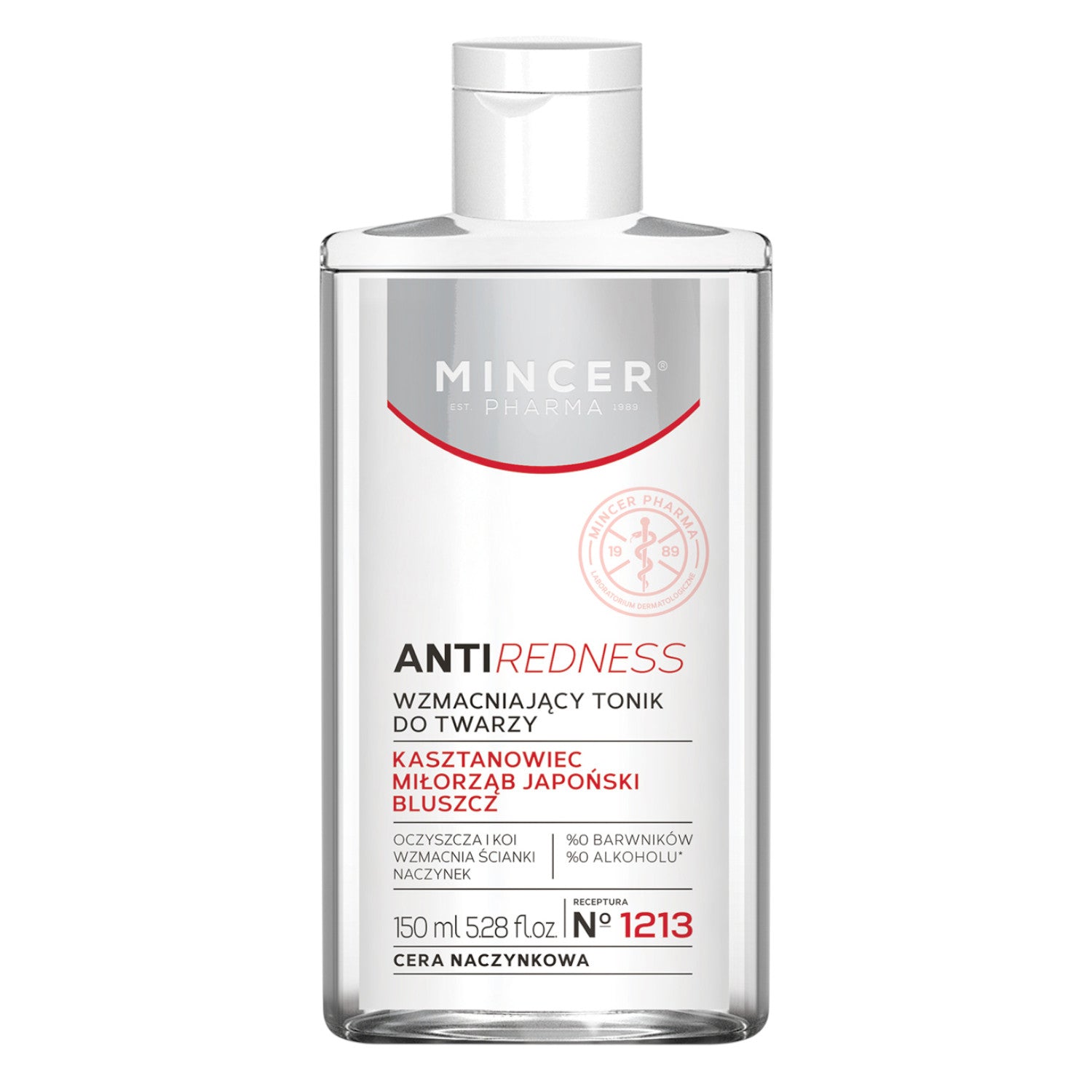 Wzmacniający tonik do twarzy z linii AntiRedness to specjalistyczny preparat do oczyszczania oraz wzmocnienia ścianek naczynek. Receptura zawiera składniki aktywne takie jak kasztanowiec, miłorząb japoński, które zmniejszają nadmierną przepuszczalność naczynek, działają przeciwzapalnie, przywracają skórze elastyczność, wzmacniają ściany naczynek oraz działają antyseptycznie, a także bluszcz działający przeciwobrzękowo, w rezultacie skóra jest ukojona, bez podrażnień, a ścianki wzmocnione.